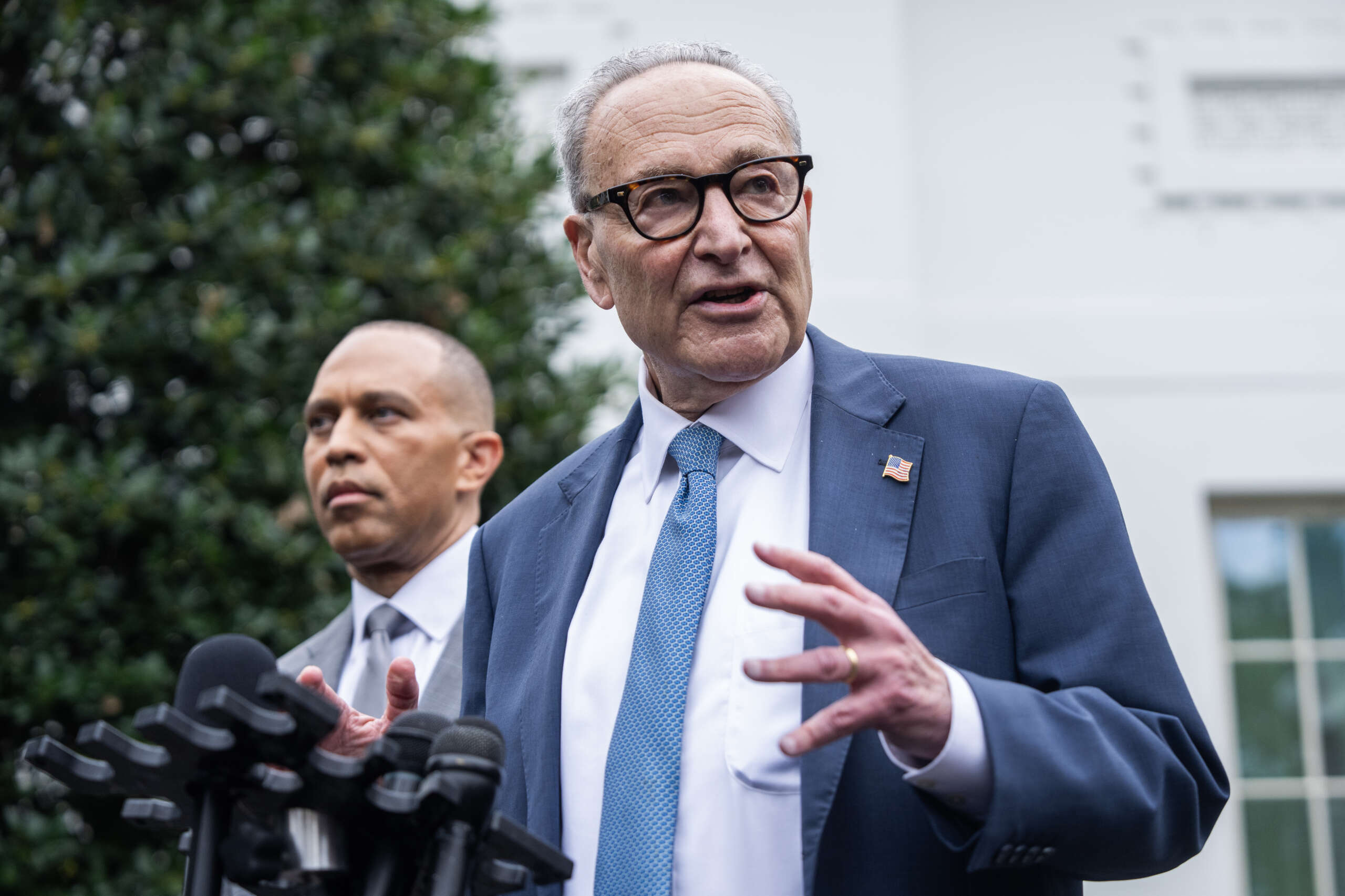 President Donald Trump and congressional leaders met at the White House to negotiate avoiding a government shutdown before the funding deadline. After the meeting, Trump posted an AI-generated video depicting House Minority Leader Hakeem Jeffries with a Mexican sombrero and a fake mustache. Senator Alex Padilla condemned the post as racist and said Democrats had come to keep the government open. Jeffries called the video bigotry and reiterated demands to cancel proposed cuts, lower costs, and protect healthcare. Democrats seek to extend Affordable Care Act subsidies set to expire and to reverse Medicaid cuts included in the Republican bill.